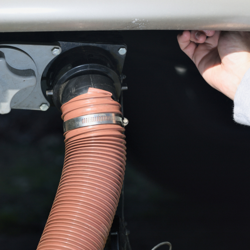 Then, follow it up by dumping the gray tank to help flush out any residue left in the hose.