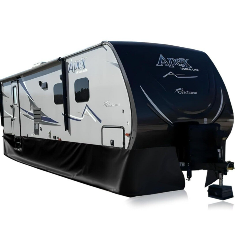 - Heavy-duty RV skirting to block cold air from circulating underneath the RV, for longer stays in one place.