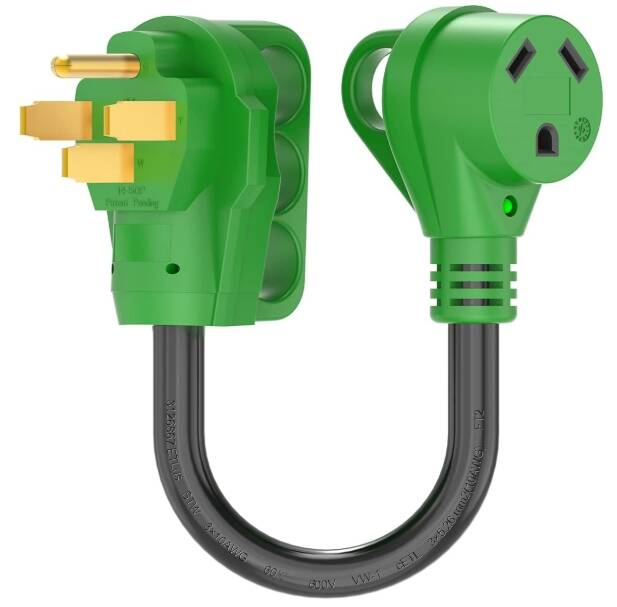 RVGUARD 50 Amp to 30 Amp RV Adapter Cord 12 Inch, NEMA 14-50P to NEMA TT-30R, Dogbone Electrical Converter with LED Power Indicator and Disconnect Handle