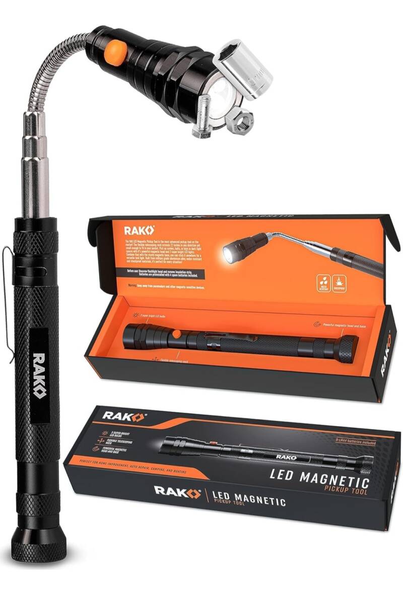 RAK Magnetic Pickup Tool Gifts for Men - Telescoping Magnet with LED Flashlight and 22 Inches Extendable Neck - Cool Gadget Gifts for Dad - LED Flashlgiht