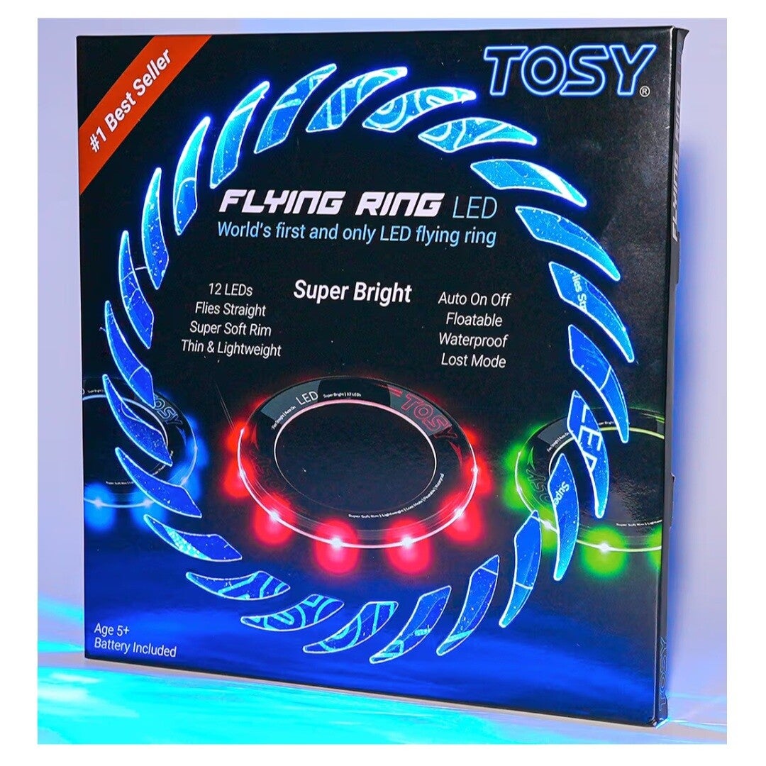 TOSY Flying Ring - 16 Million Color RGB or 12 LEDs, Super Bright, Lost Mode, Auto Light Up, Safe & Soft, Waterproof, Lightweight Frisbee